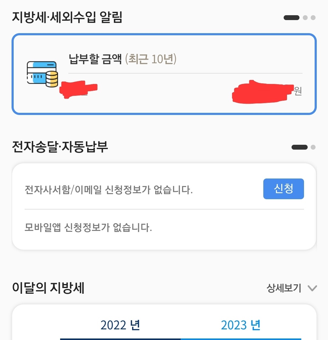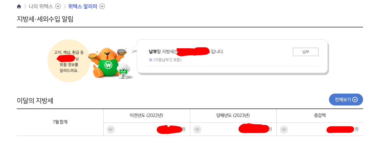 3) 지방세를 클릭하여 납부할 금액을 확인합니다.