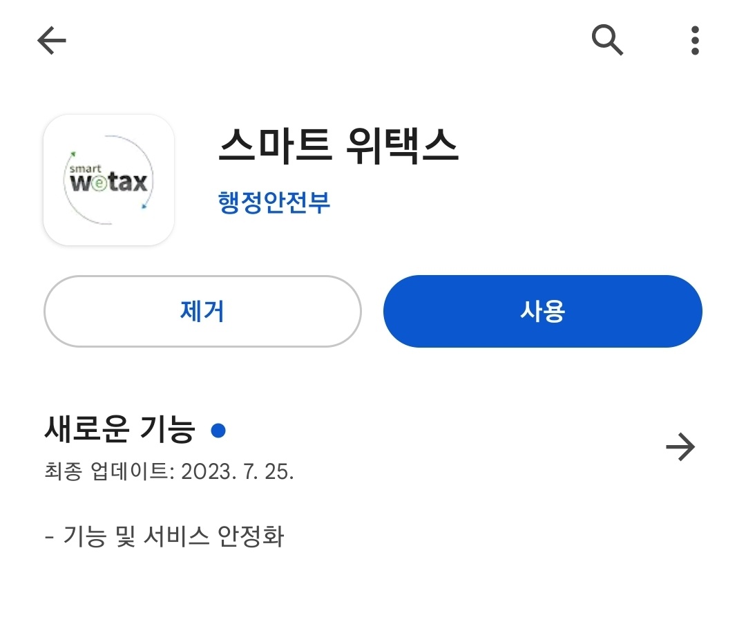 1) 모바일 버전 위택스 어플 다운로드 받기