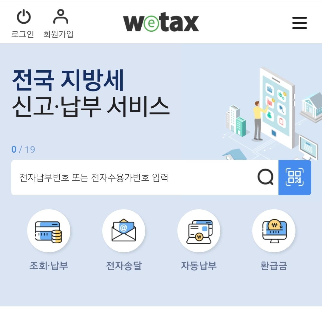 2. 모바일 버전 위택스 어플로 재산세 납부하기