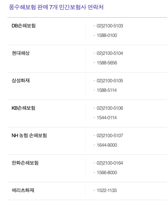 - 풍수해보험 판매 7개 민간보험사 연락처