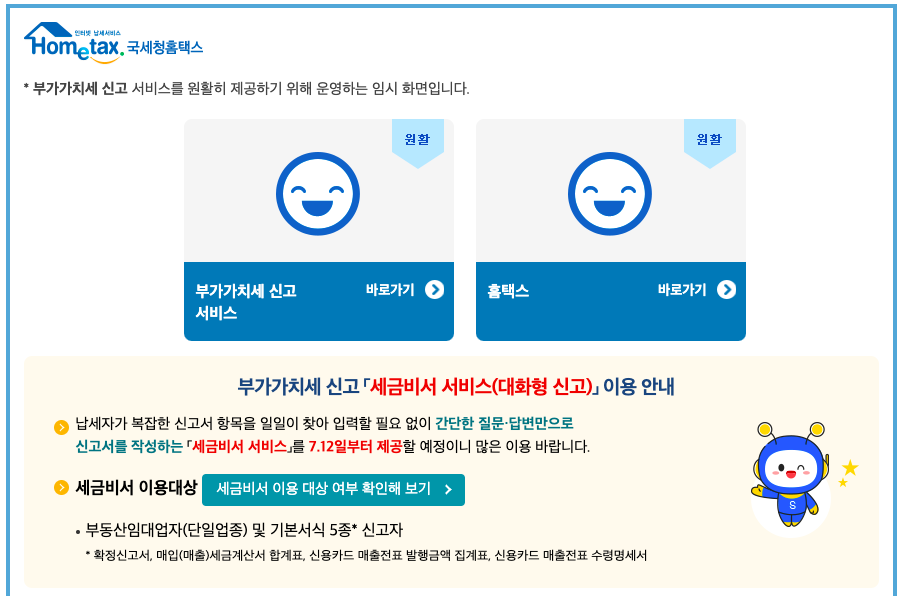 ‘세금비서 서비스’를 7월 12일부터 제공한다고 하니 부가가치세 신고가 훨씬 간편해질 것으로 예상됩니다.